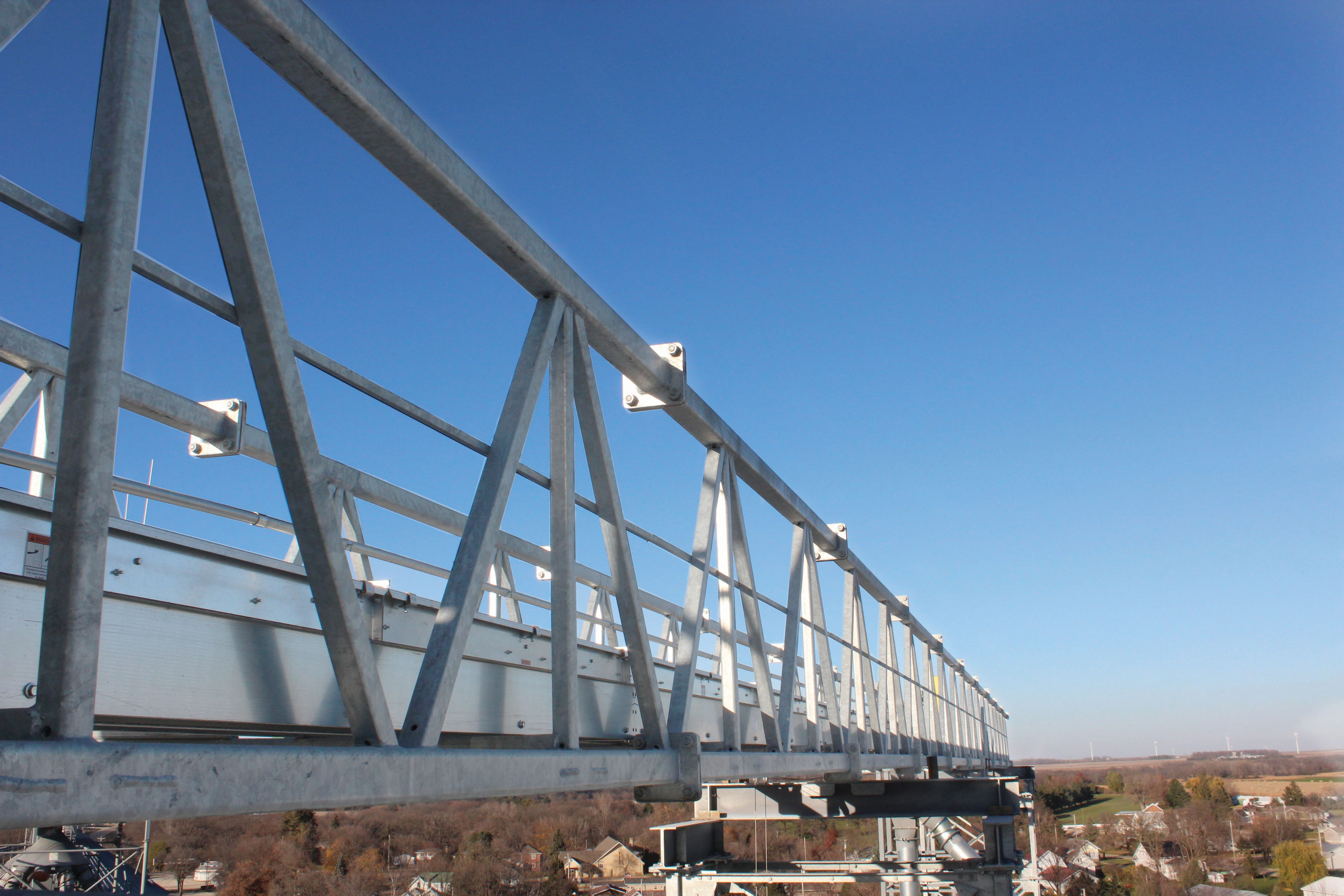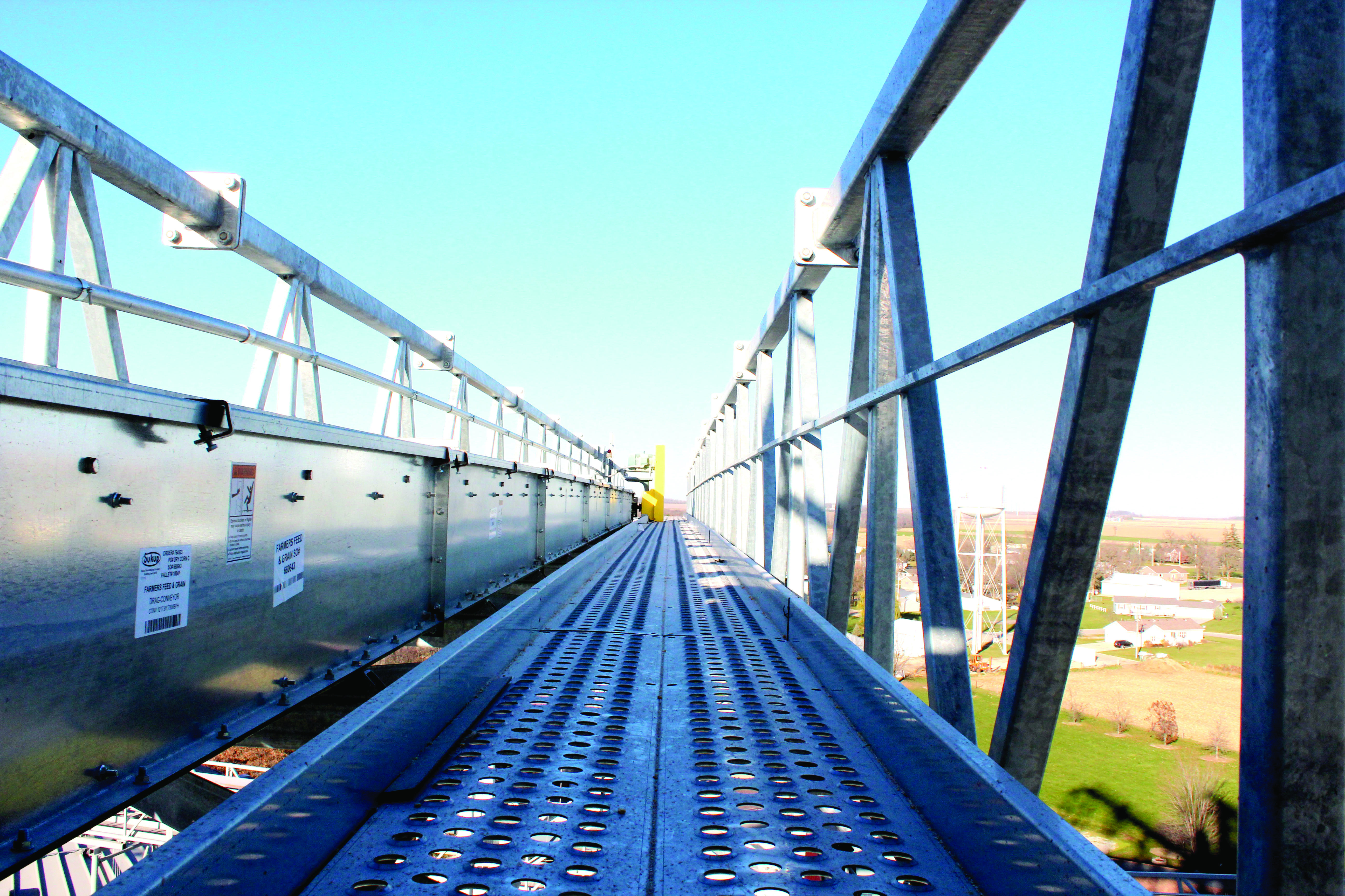 Standard features include a 24” walkway with optional full-width expanded metal grating, providing a safe passageway for personnel. Optional features such as tie-back bracing for bin stiffeners and internal bracing for four-leg towers further enhance the versatility and stability of the catwalks. If Catwalks don't meet your needs, ask about Sukup's box trusses.